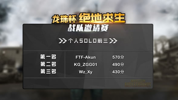 11月19日到20日,龙珠杯绝地求生战队邀请赛Solo赛总决赛落下帷幕,其中80位选手经过5场精彩绝伦的比赛角逐,最终FTF战队的Akun荣获Solo赛冠军,KG_ZGG01、Wz_Xy分获二三名。团队赛决赛也正在火热的进行中,让我们共同关注龙珠直播,为你喜欢的战队加油吧!