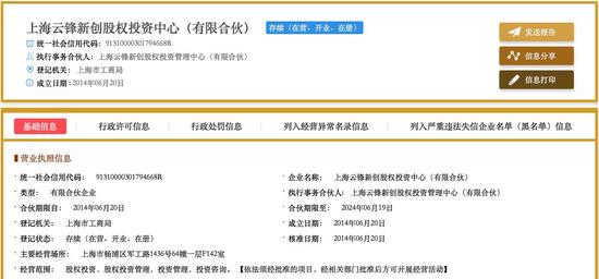 据了解,云峰新创成立于2014年,由上海云锋投资管理有限公司负责管理。云峰管理也就是颇为有名的云峰基金。