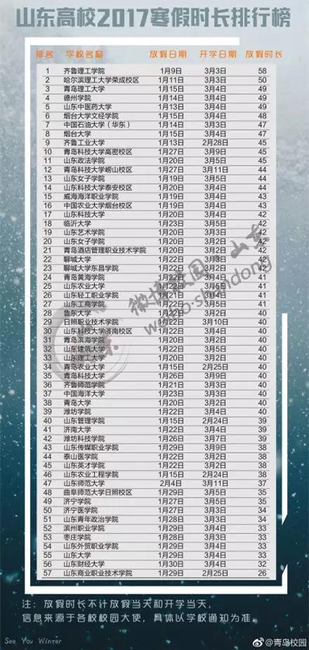在@青岛校园 统计的山东各高校中,寒假最长与最短的高校竟相差一个月!