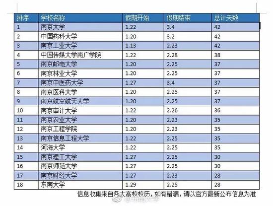 在南京,东南大学、南京财经大学以28天的寒假时长成为南京“最学霸”的高校。