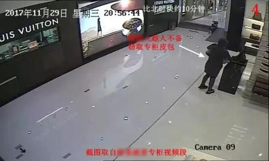 女子再次走进专柜内,假装不经意地挪到了之前看上的包包的位置,伸手将包包塞进了环保袋里,随后,大大方方地转头就走……