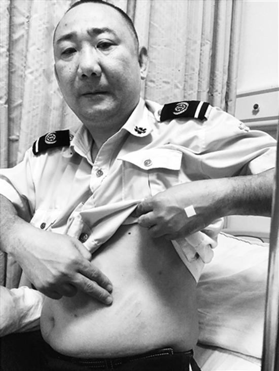 吴先生肚子上的伤痕。