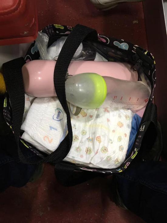 在女婴的随身包裹里,巡逻队员发现内有奶粉、奶瓶、药品、衣服、尿不湿等物品和一张“请好心人看到后立即报警”的手写的留言。