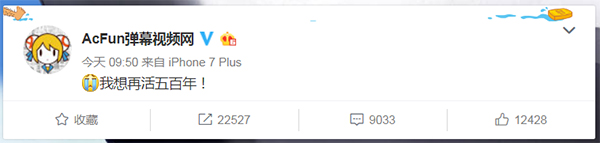 2月2日上午约10时,网友们发现AcFun弹幕视频网(即A站)无法访问。A站官方微博在9时50分发布微博:“我想再活五百年!”并配以大哭的表情。