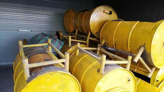 小隔间里面的黄色油桶,是居民过年时烧香时用的,过完年,物业就把油桶堆放在隔间里面,准备来年再用。