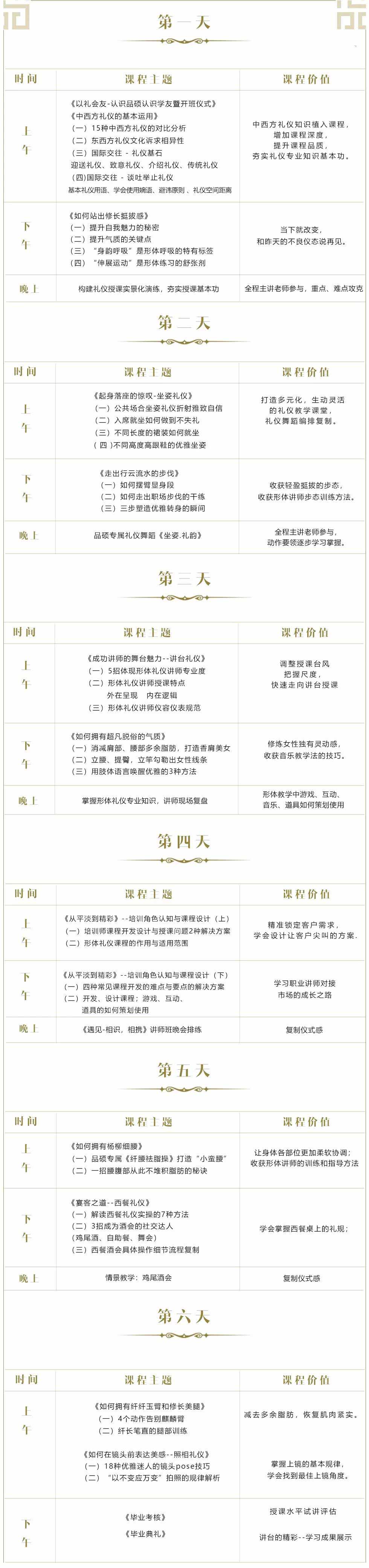 6、就业无忧:强大企业后援,享受优先就业权(优秀讲师包’录取、包分配、高待遇高福利)早日铸就礼仪梦;