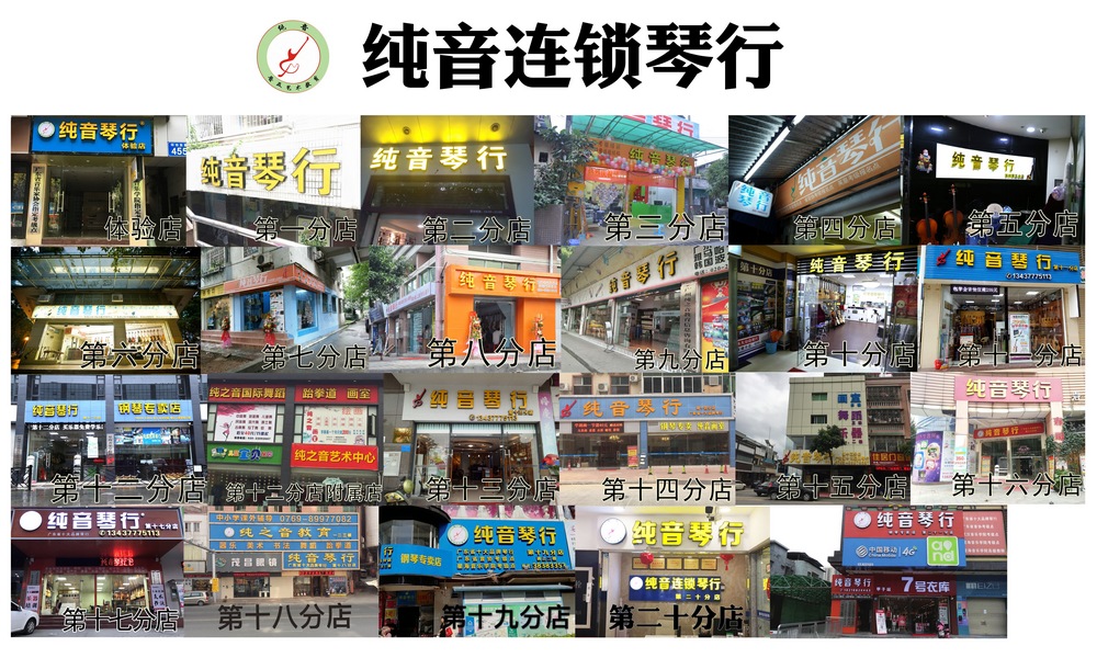 纯音琴行,是一所集音乐教育,美术教育,钢琴专卖,乐器销售,乐器批发等以音乐艺术为主题的培训机构。自2006年开办以来已有12年历史,培训学生共计10万余人次。2012年纯音连锁琴行开启低学费高质量教学模式,也是国内首创包学会教学模式,学不会一律免费重学。得到了学生们的一致认可和家长们的喜爱。纯音琴行在广州每个区都有分店,大大缩短了一些同学们的上课地点.目前广东惠州,东莞共计21家分店。
