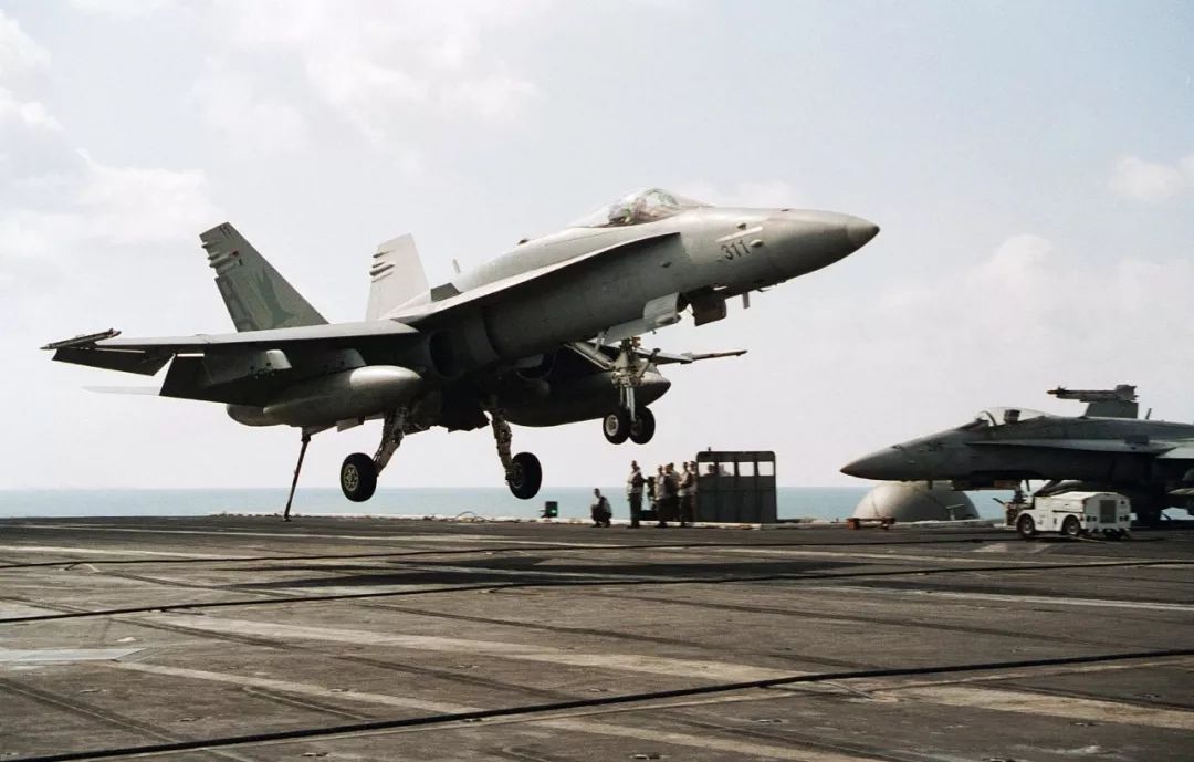 ▲斯蒂尔尼海军中将曾是优秀的舰载战机飞行员。图为美海军FA-18C“大黄蜂”战机着舰资料图。
