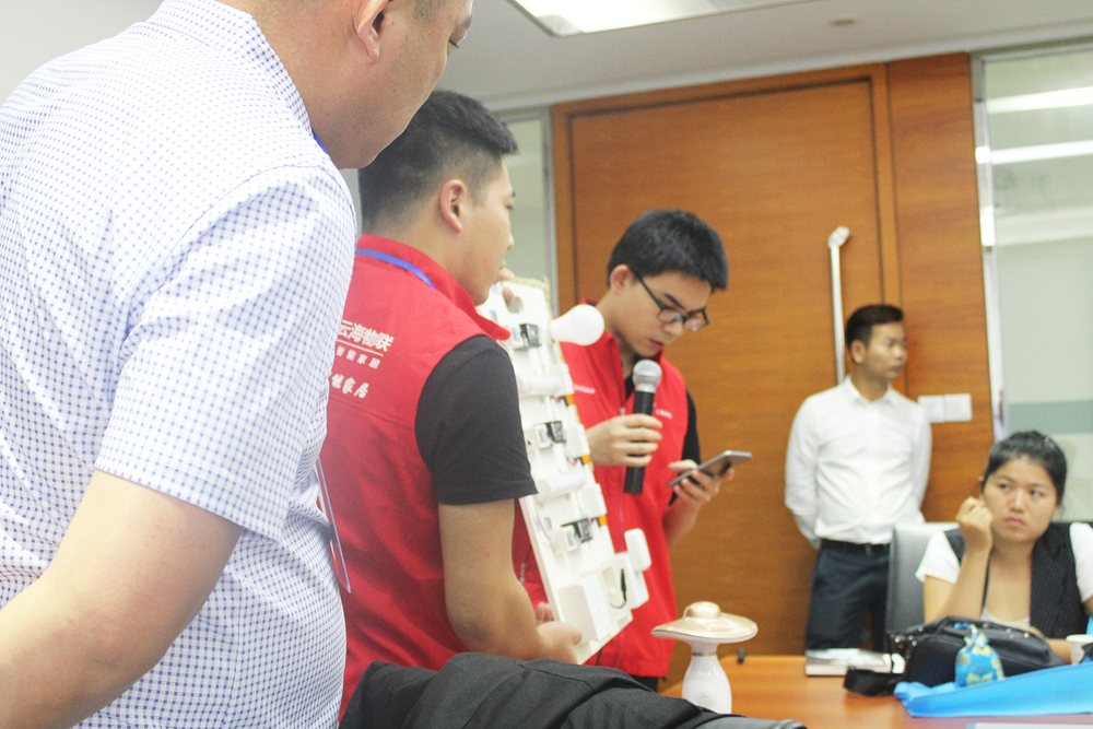 云海物联技术大牛钟宝东对云海物联产品和三大系统进行了介绍,并从智慧家庭,智慧酒店、智慧办公、智慧公寓、智慧养老配置方案进行了详细的讲解。现场陈波和宝东还给小伙们进行产品实操演示,你能看到智能产品的演示,更有小伙伴把演示视频拍下来发朋友圈分享,想要告诉大家智能家居是多么便捷、舒适、环保~~~