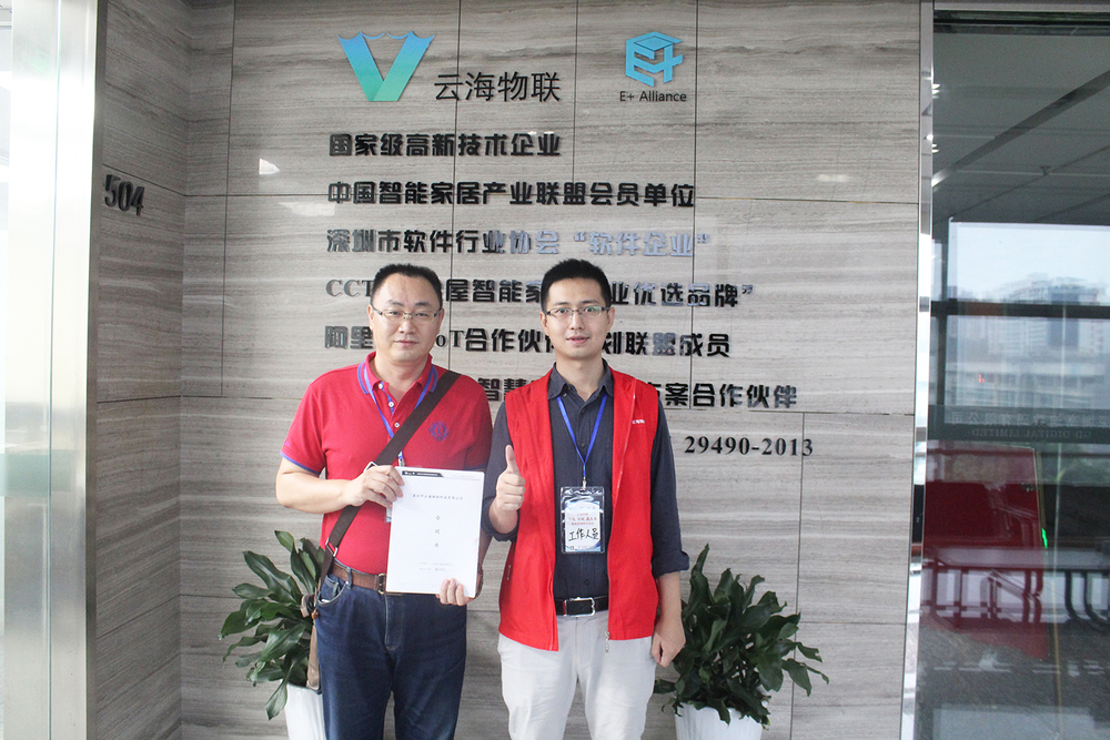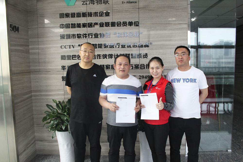 还没有听完精彩讲演,众多客户就有十几名现场签约加盟云海物联智能家居,以下是部分现场签约的合影哦!