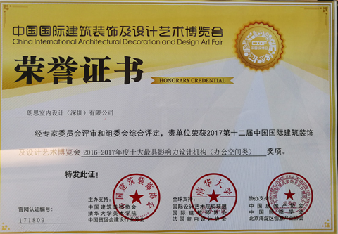 朗思国际设计在此盛会当中荣获办公空间类金奖和办公空间最具影响力设计机构成为大赢家。