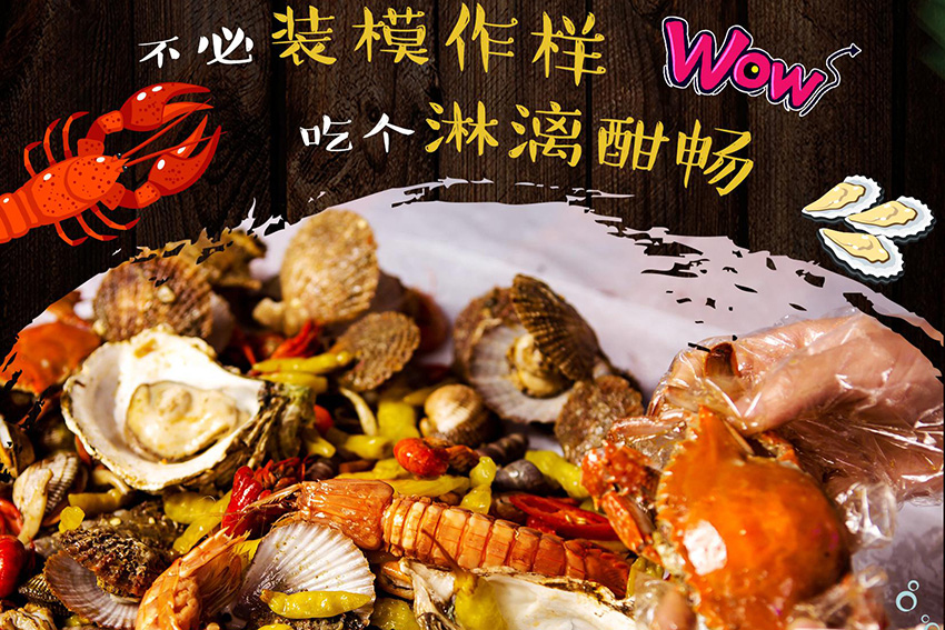 最近很火的幺妹手抓海鲜,你们知道吗? 品鉴当天在朋友圈发了照片,堆满一桌子的麻辣海鲜美食引来无数震撼。裹满了麻辣调料的海鲜美食们被一股脑的直接倒在铺好吸油纸的桌子上。没有餐具,全凭双手,十分原始和豪迈,文雅点的可以带一次性手套,质量不错不漏油,然后就是敞开了造,这别提多过瘾。越是原始的滋味越是让人向往,越是原始的方式越是让人释放