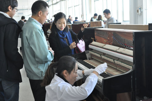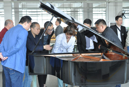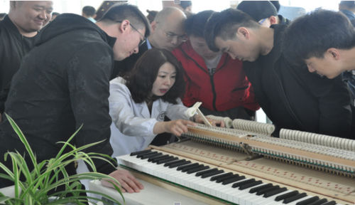 ▲三角钢琴技术工人现场示范交流机械整理