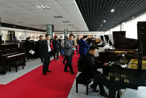 ▲与会嘉宾在博斯纳钢琴展示厅弹奏专业用217型大三角钢琴