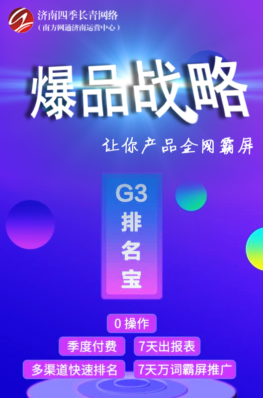 济南四季长青g3云推广打造济南企业全网营销转型,全网营销思维很重要,工具也很重要,思维是方法,工具是落地,两者结合事半功倍,济南四季长青网络g3云推广是济南一个方法加工具的营销系统落地方案,具有很强的划时代意义。互联网时代,企业转型成为了课题,如何互联网转型?核心切入点如何进行网络营销,网络营销随着互联网的发展而发展,以前的建个网站,做个竞价,做个优化,做个B2b等已经不符合时代的发展了,现在进入了全网营销时代,济南四季长青网络的g3云推广帮助济南企业进行全网营销转型。