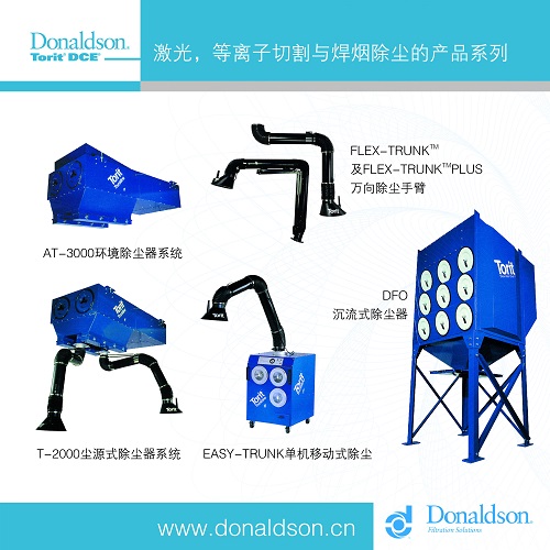 DFOE系列除尘器唐纳森公司专门为激光切割、等离子切割、焊接等应用领域烟尘处理而设计的一体化除尘设备。DFOE系列除尘器采用唐纳森专利滤材纳米级Ultra-Web® , 使得DFOE除尘器过滤效率更高、保持更低的压降、滤筒的使用寿命更长。